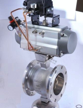 V型球阀是球阀的一种,它的关闭件是半球体上开有V字型开口,V型开口具有锋利的刃口,在球体回转过程中,关闭件之间有擦拭作用,对介质具有强有力的切断力,球体的V型开口与阀座流道形成一个扇形区域,在回转过程中可改变流道截面积,形成对介质的精确调节,它是一种角回转的调节阀,其密封性能与普通球阀相同,使它同时具备调节和开关两种功能,与气动或电动执行器配套,广泛使用于工业过程自控系统中。